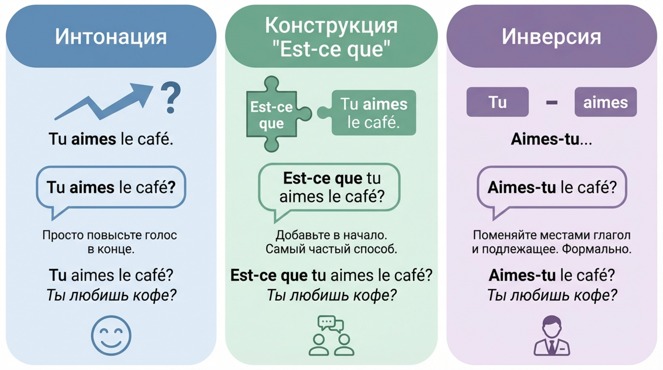 Французская система вопросов проще, чем кажется. Существует три основных способа задать вопрос, и все они активно используются носителями языка в зависимости от контекста и степени формальности.