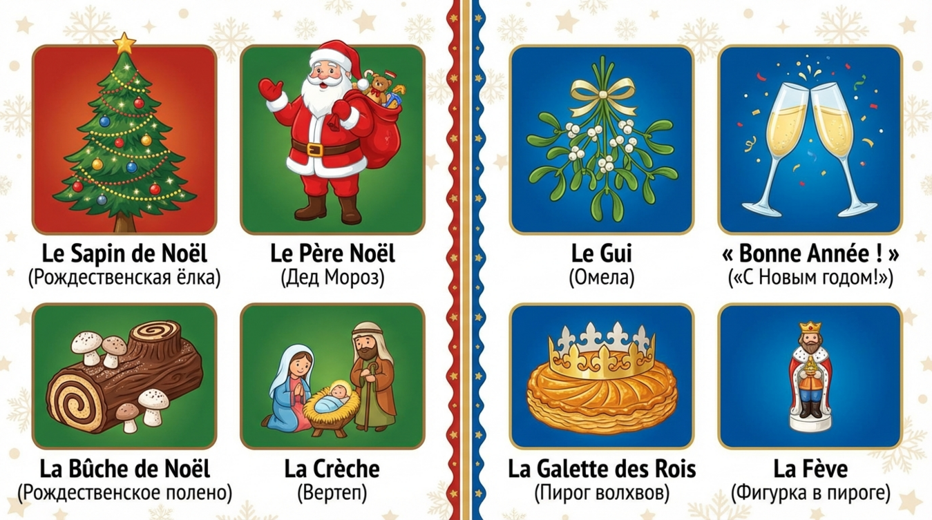Французские зимние праздники выстроены вокруг семейных ценностей и гастрономических традиций. Noël (Рождество) отмечается 25 декабря и считается главным семейным праздником года, тогда как le Nouvel An (Новый год) — это время для друзей и шумных вечеринок. Понимание базовой терминологии позволит вам не просто знать слова, а улавливать культурные нюансы.