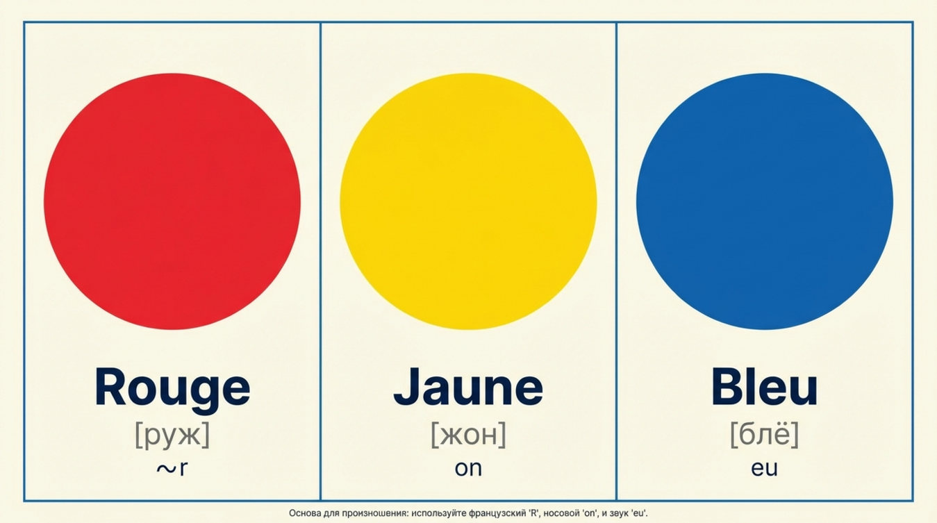 💡 Практический совет: Создайте визуальные карточки с цветными образцами и французскими названиями. Мозг лучше запоминает информацию при совмещении визуального и вербального канала. Развесьте стикеры с названиями цветов на предметы соответствующих оттенков в квартире — это ускорит запоминание в 2-3 раза.